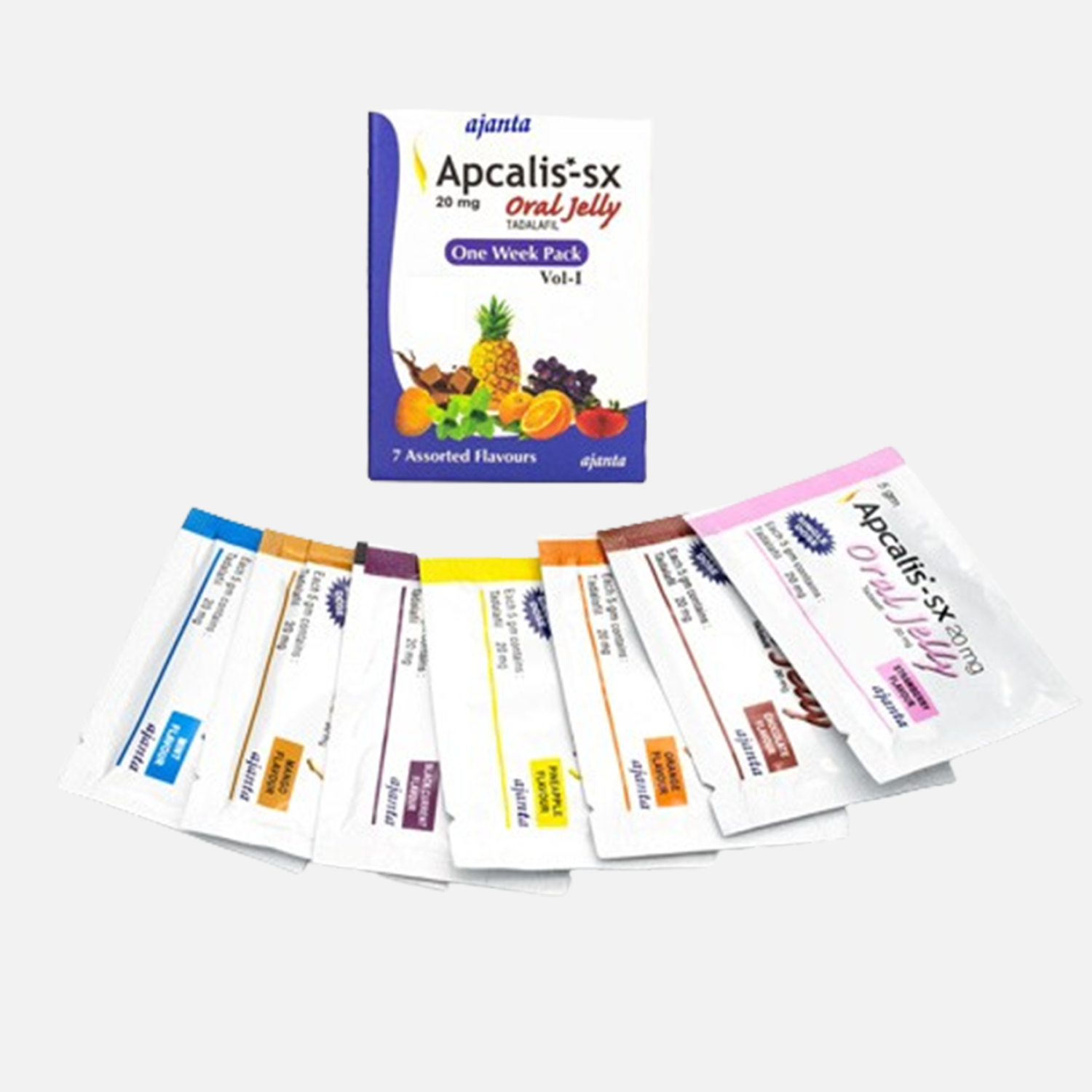 Apcalis-SX is a fast-acting oral jelly used to treat erectile dysfunction (ED) in men. It contains Tadalafil, a well-established active substance known for its long duration of action. Instead of a tablet, Apcalis-SX comes in single-use flavored sachets, making it easier to take — especially for those who find pills inconvenient.