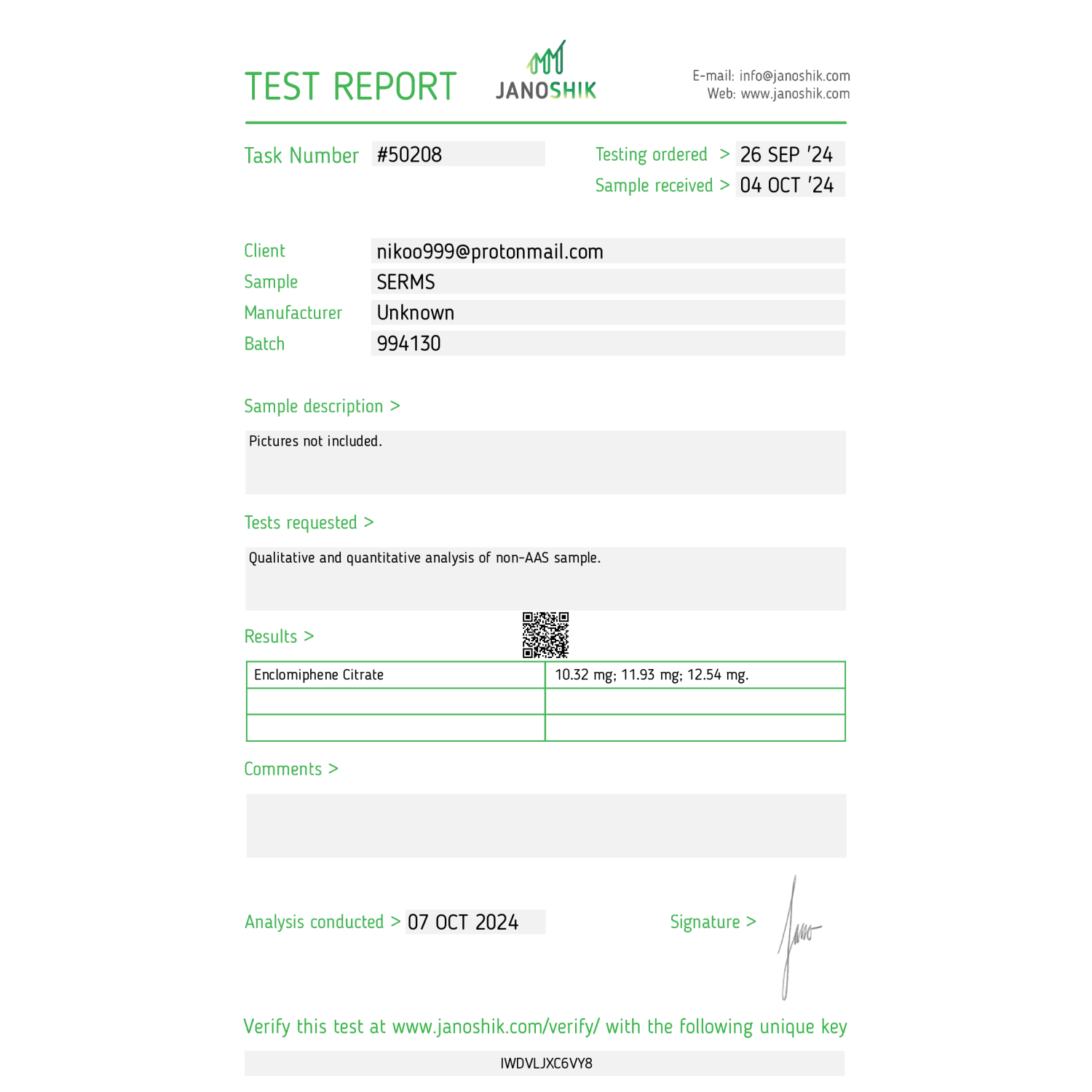 Active ingredient: Enclomiphene citrate
