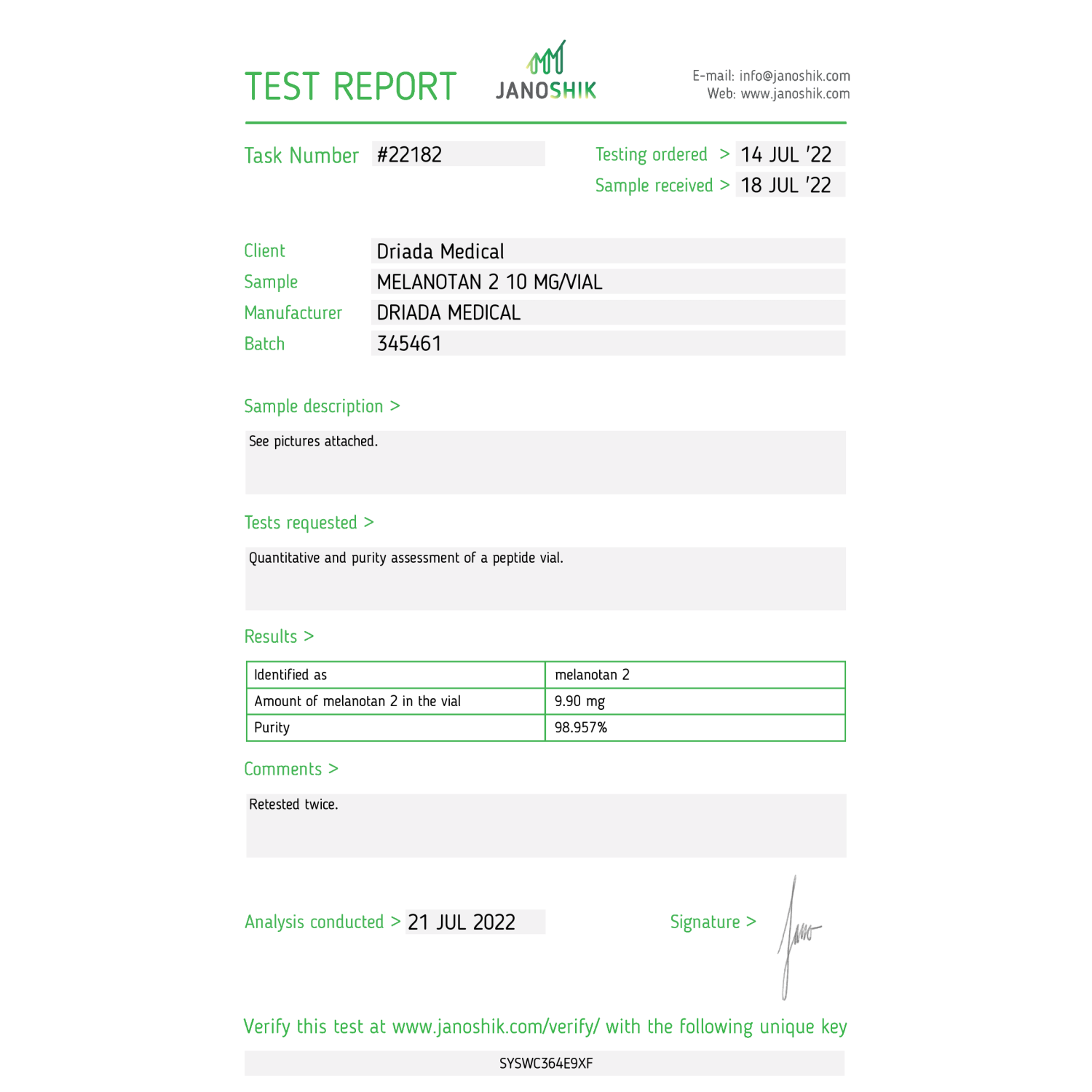 Melanotan 2 is a hypothalamic hormone which belongs to the melanotropin family, a group of peptides that react with melanocortin receptors and has a wide range of effects on almost all tissue types. Other melanotropic hormones include ACTH and alpha melanocyte stimulating hormone (a-MSH). Melanotan 2 is an alpha-melanocyte- stimulating hormone analogue structurally modified t reduce enzymatic degradation and increase receptor binding. Initially, the properties of the hormone to cause sunburn and pigmentation were studied, but more recent studies have focused on its antioxidant properties, the effect on the displacement of physiological rhythms, and the possible usage of the drug as a therapy for erectile dysfunction. Melanotan 2 is a broad and powerful melanocortin system stimulant.
