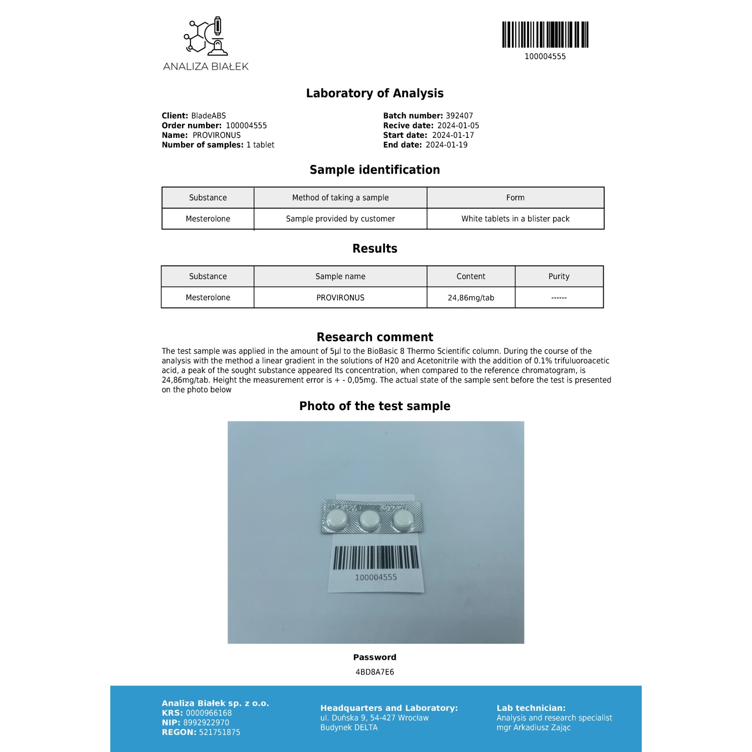 - Form: Oral (pills)Mesterolone, sold under the brand name Provironus, is an orally active androgen and anabolic steroid (AAS) medication that is used mainly in the treatment of low androgen levels and its aftermath – low libido. It has also been used to treat male infertility, but this use is somewhat controversial.Mesterolone is sold in 25mg tablets as Provironus 25mg mostly, but if you buy mesterolone (Provironus 25mg) online it can be sold in different concentrations.;